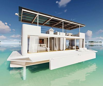 Make the ocean your permanent address by moving aboard the Arkup 40 livable yacht. It can be customized into a studio, a one-bed one bath, or a two-bedroom two-bathroom yacht with 7.5-foot floor-to-ceiling windows that serve up views that are hard to beat.