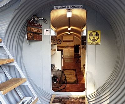 Ensure your family’s well-being in the post apocalyptic world by placing an Atlas underground survival shelter on your property. The long cylindrical design comes with a functional kitchen and bathroom, along with an air filtration system and a decontamination room.