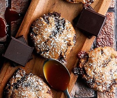 Soft baked Belgian chocolate cookies loaded with dark cacao chunks, buttery salted caramel, and a kiss of pink Himalayan salt. Hand scooped and baked fresh from a family recipe, each bite hits sweet, salty perfection behind millions of cookies sold.