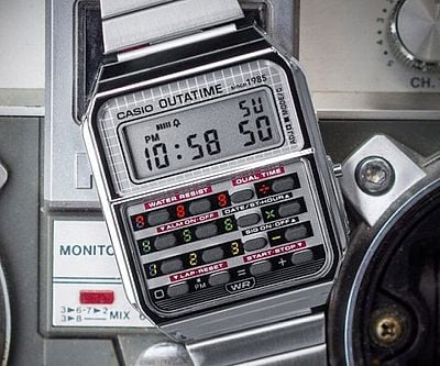 Casio’s Back to the Future Watch channels Doc Brown’s DeLorean dashboard with multicolored calculator buttons, an OUTATIME label, and a flux capacitor caseback. It’s the ultimate nostalgic timepiece for fans of 1.21-gigawatt adventures.