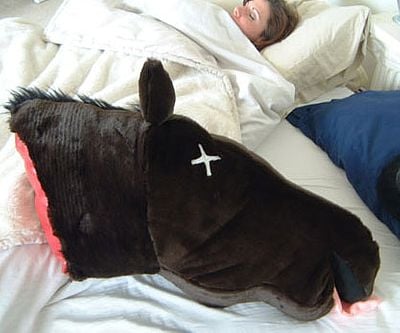 Give that wise guy a gift he won’t refuse with this dead horse head pillow. With its racing days behind him, this surprisingly comfortable decapitated horse head plush will send a strong message to your recipient that you mean business.