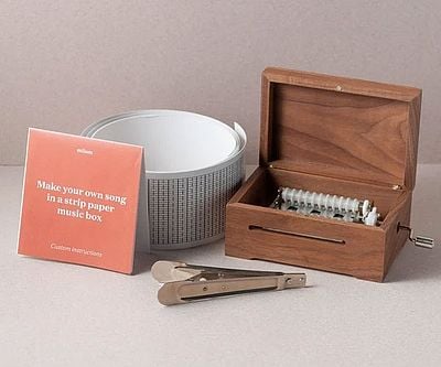 Create and play your own melodies with the DIY Music Box Kit! Punch out notes on the provided strip, place it in the beautiful maple box, and turn the crank to hear your song come to life. You can choose from 20 or 30 notes!