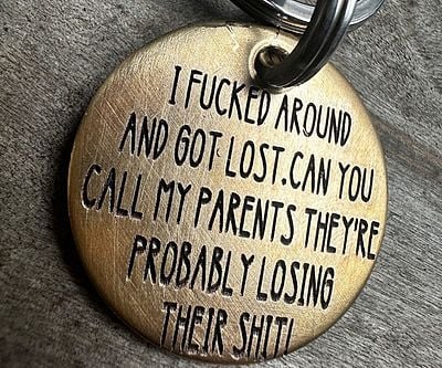 For the dog who lives to FAFO, this personalized lost tag says it all: wandered too far, overestimated his street smarts, and now needs rescuing while his human is losing their mind. Durable, hilarious, and perfect for four-legged troublemakers.