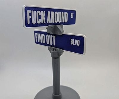 Let your desk do the talking with the F*ck Around & Find Out Sign. This 3D-printed mini street post is the perfect blend of attitude and decor, ideal for warning coworkers, guests, or your cat about the consequences of nonsense.