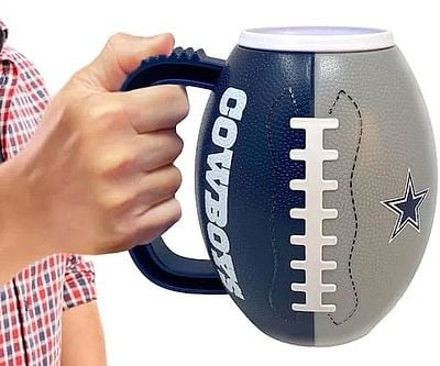 Show your team pride with a 23 oz football-shaped mug decked out in your favorite team’s colors and logo. It’s the perfect oversized drink vessel for game day, Monday morning victory coffee, or passive-aggressive office trash talk.