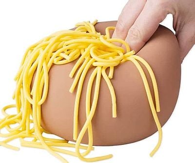 Feeling saucy? The Giant Meatball Stress Ball is here to squash your stress! This oversized, squishable meatball comes with stretchy spaghetti noodles for extra fidget fun. No mess, no calories – just pure, hands-on stress relief.