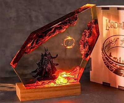 Illuminate your room with the dark power of the LOTR Sauron Resin Lamp! This intricately detailed masterpiece channels the sinister allure of the One Ring, casting a mesmerizing glow. It’s a must-have centerpiece for your geeky lair!