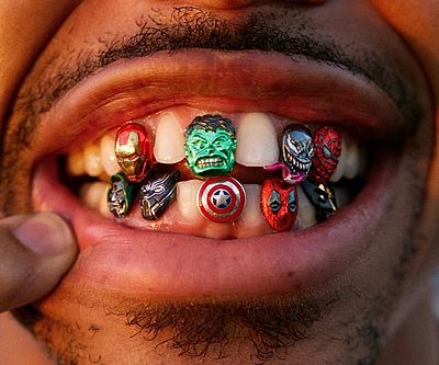 Unleash your inner Avenger with Marvel Superhero Grills by 28Grillz. These custom-made mouth bling masterpieces fuse comic-book flair with serious street style. Heroes, villains, your call – because saving the world should always come with a sparkling smile.