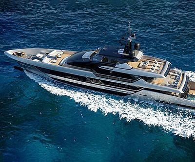 The Riva 54 Metri is a 177-foot superyacht with four decks, marble-and-teak interiors, and accommodations for 10 guests. Highlights include a beach club with pool, outdoor bar, sun pads, and tender storage, delivering luxury cruising at its finest.