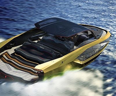 The Tecnomar x Lamborghini 63 yacht is the epitome of luxury performance on the water. Inspired by the iconic Italian sports cars, this magnificent and sleek vessel comes equipped with a pair of MAN V12 engines for a total of 4,000HP and a top speed of 60 knots.