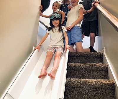 The stair slide will keep the kids from getting restless when they’re stuck inside. The slide features durable construction and a design that allows you to place the slide against the stairs without any type of permanent anchoring.