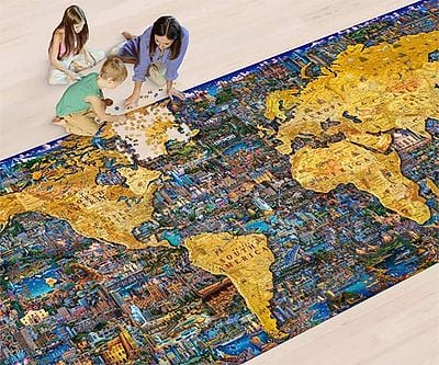 Take on the ultimate puzzling challenge with the world’s largest puzzle at 60,000 pieces! Spanning 8 feet tall and 29 feet long, this masterpiece features 187 vibrant Dowdle paintings, interlocking seamlessly for an unforgettable journey around the world.