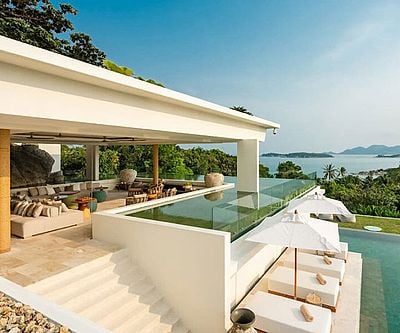 As seen in The White Lotus Season 3, this stunning Ko Samui villa offers seven king suites, sea views, private hot tubs, an infinity pool, full gym, courts, and cinema – luxury living just minutes from Choeng Mon Beach and rainforest.